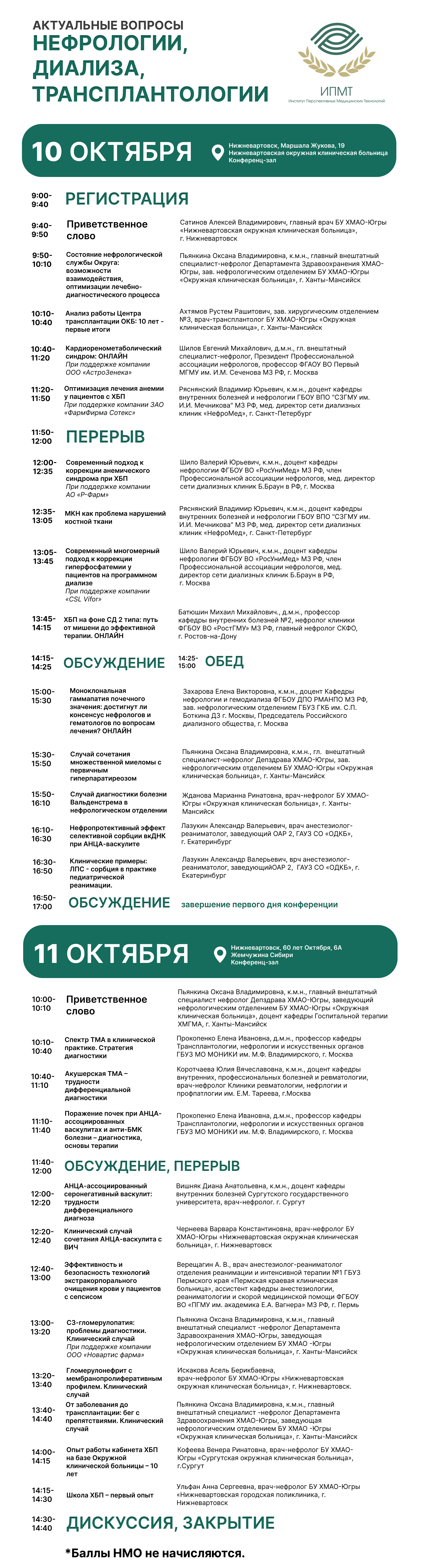 Приглашаем Вас принять участие в окружной научно – практической конференции ХМАО - Югры «Актуальные вопросы нефрологии, диализа и трансплантологии».